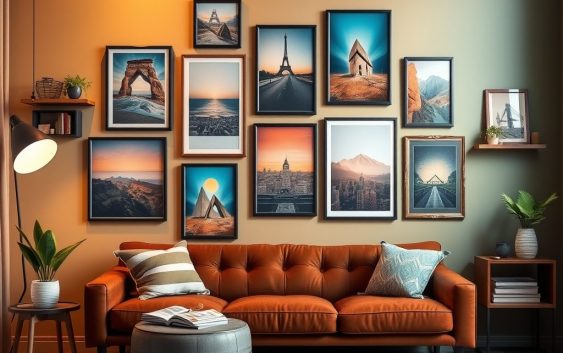 Punkty skupienia to dodatkowe elementy, które wprowadzają równowagę i interes do kompozycji. Możesz zrealizować to poprzez umiejętne rozmieszczenie mniejszych plakatów wokół dominanty. Zainwestuj w różnorodność kształtów i rozmiarów, aby nadać galerii dynamiki, jednak pamiętaj o zachowaniu spójności kolorystycznej.